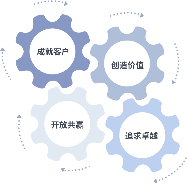 成就客户是一切决策的出发点,创造价值是衡量所有工作的标准,追求卓越是DB电子做事做人的态度,开放共赢是DB电子的格局也是最终的结果。价值观的齿轮环环相扣,推动着组织里的每个人不断向前。